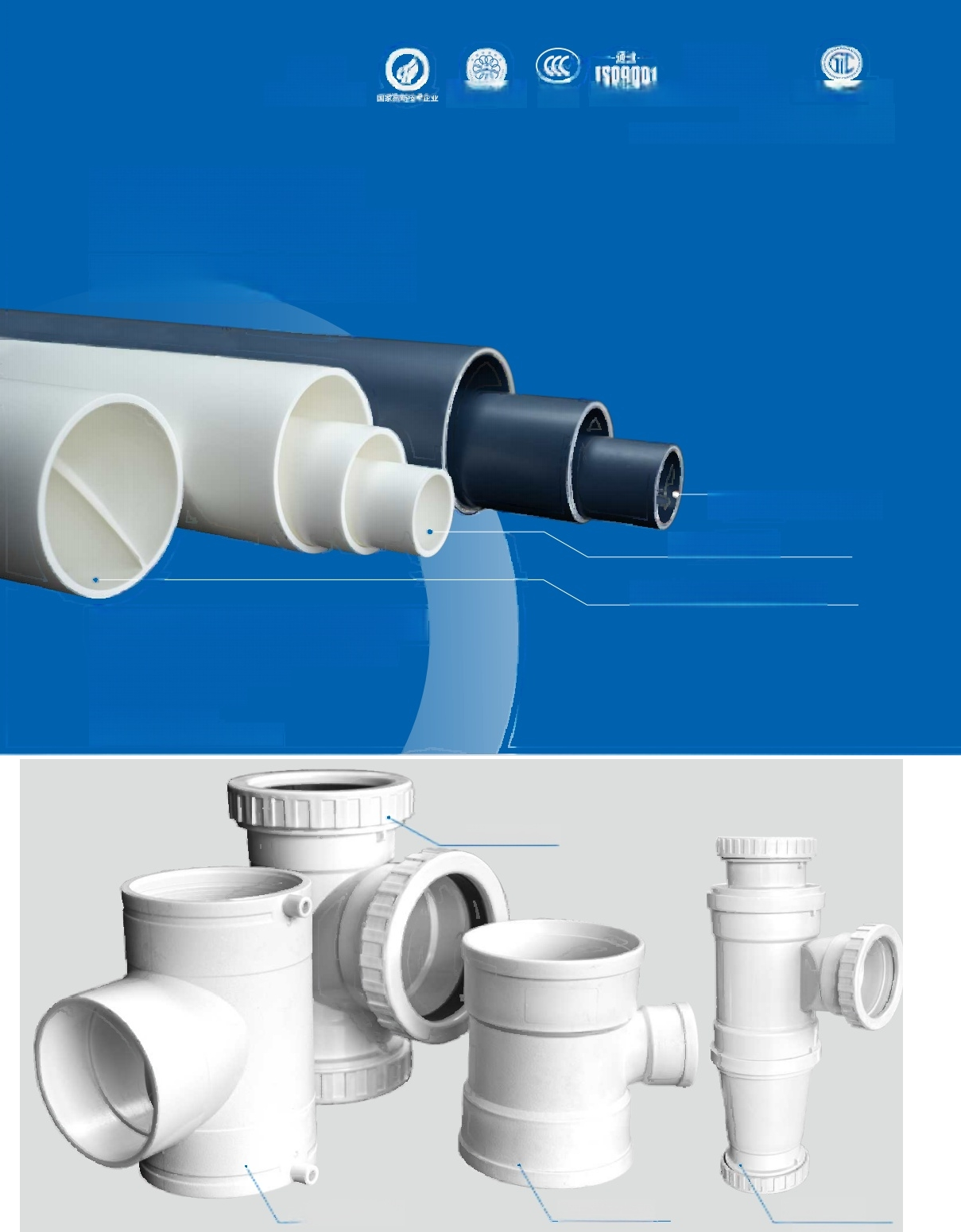 管材材质模量低,能有效吸收声波振动;独特的“三层复合”结构能阻隔噪音传播,相比传统PVC 管可显 著降低噪音10-20分贝。