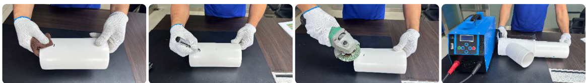3.用干布清洁承口的内侧和插口的外侧,必要时可使用清洁剂保持清洁;